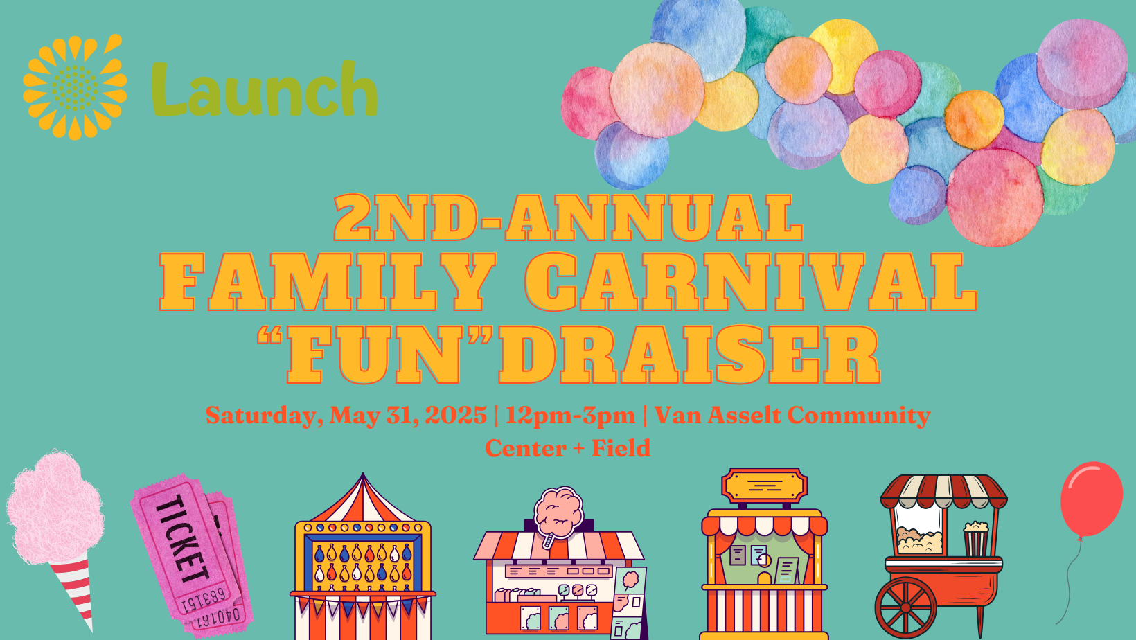Our 2nd-Annual Launch Family Carnival “Fun”draiser was a resounding success, raising over $25,000 in support of our mission! Held on Saturday, May 31st at the Van Asselt Community Center & Fields, this joyful community celebration brought together neighbors, supporters, families, students, and staff from all 14 Launch sites to honor the heart of our organization – our kids.